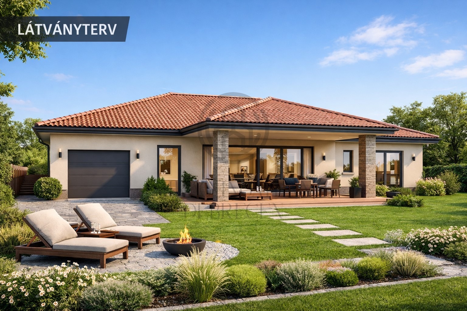 - Extra kényelem: 20 m²-es garázs automata kapuval, burkolt terasz a családi vacsorákhoz, és tágas terek a mediterrán életérzés jegyében.