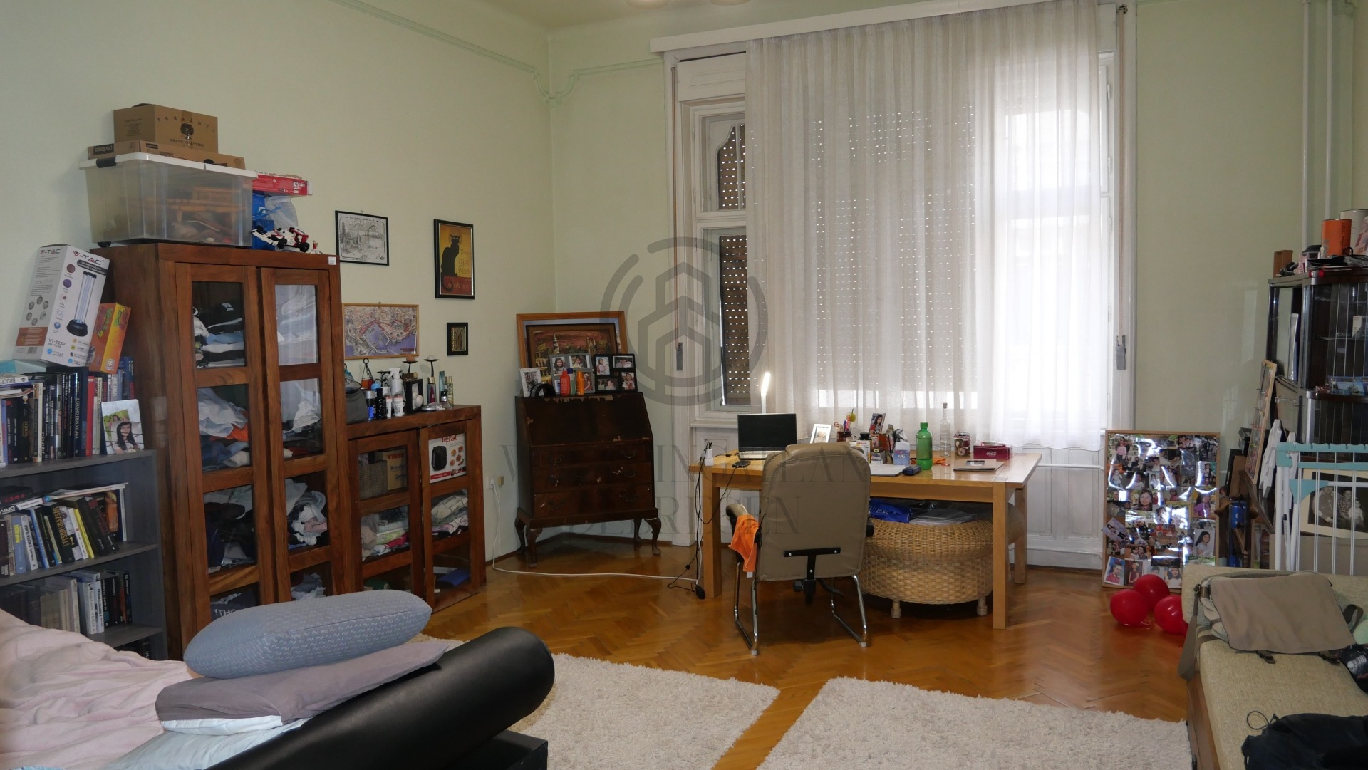 * Parkettás szobák, fa nyílászárók redőnnyel.